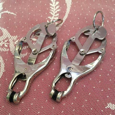 Snygga klämmor för dig med hög tröskel. Rejält nyp som görs än hårdare när en drar i ringarna. Gummiklätt "bett".