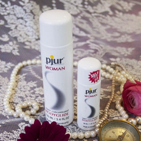 Särskilt utformat för känsliga slemhinnor. Silikonbaserat - håller sig halkigt länge. Pjur Woman är ett något tunnare silikonglid med "lätt" känsla.