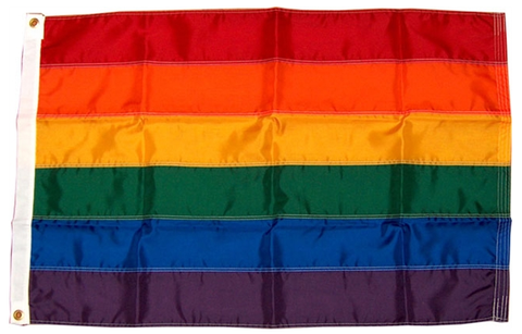Regnbågsflagga, "Pride-flagga", med sydda paneler och metallöglor i två av hörnen. Tål regn, rusk och utomhusbruk. 40x60 cm.