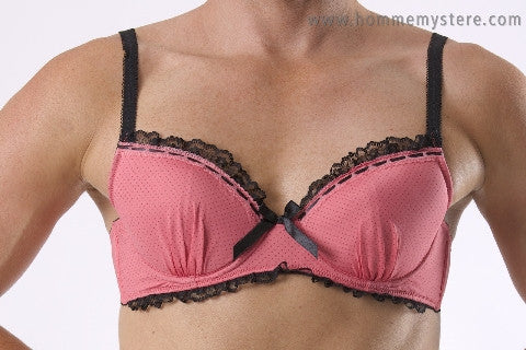 Fodrad BH med diskreta ton-ton prickar, vackra spetsdetaljer och rosett framtill.