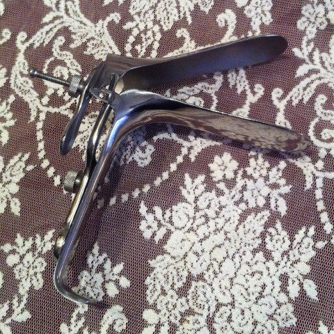 Klassiskt vaginalt spekulum i metall. Medical play anyone?